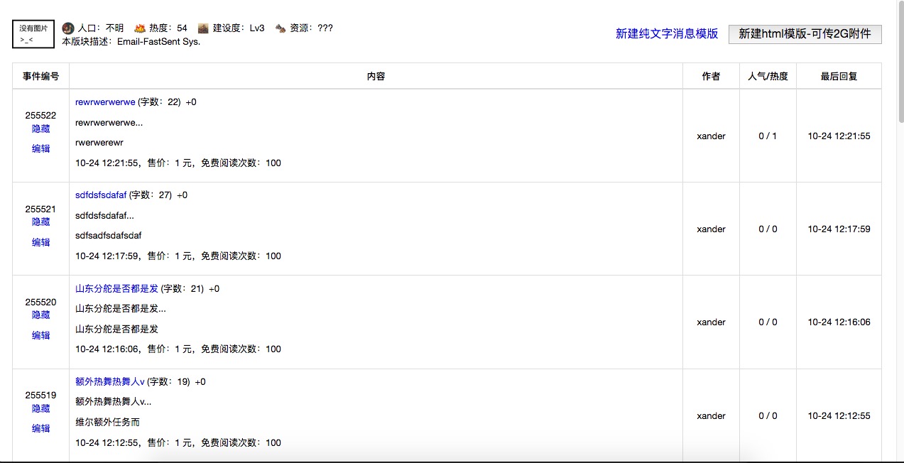 1、现在上传完发件地址后会显示在下面,在发送完成之后返回到上传地址页面时,之前上传的发件地址不在显示。 2、发送的邮件模板增加删除功能。 3、发件邮箱增加输入让客户自己填写。点解发送按钮之后跳出弹窗让客户自己填写即可。 4、如果邮件带有附件会使邮件被过滤,可取消附件功能。(到时我可以直接和客户说不能发送附件即可,现在我们不用管了)