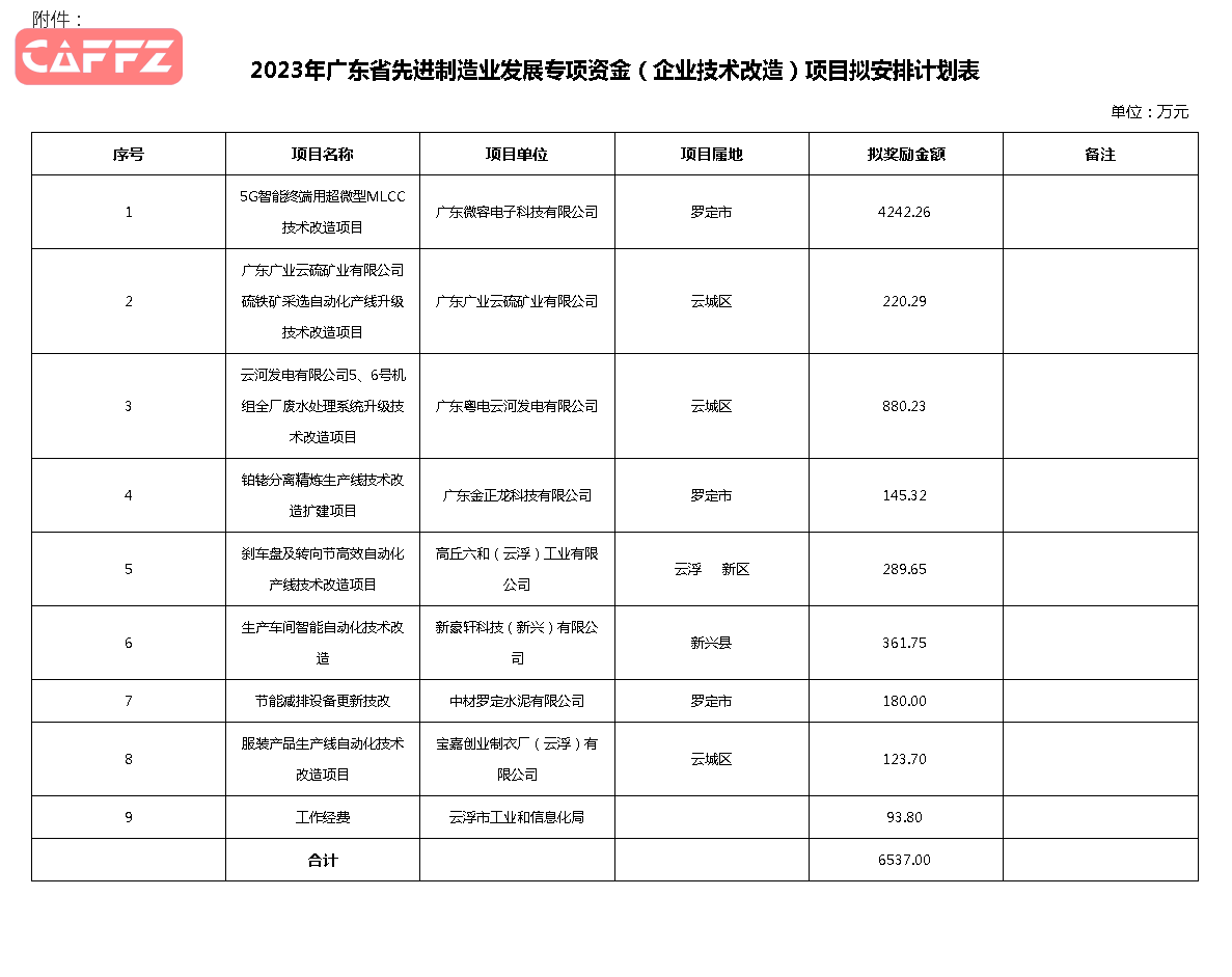云浮市工业和信息化局关于2023年广东省先进制造业发展专项资金(企业技术改造)项目拟安排计划的公示