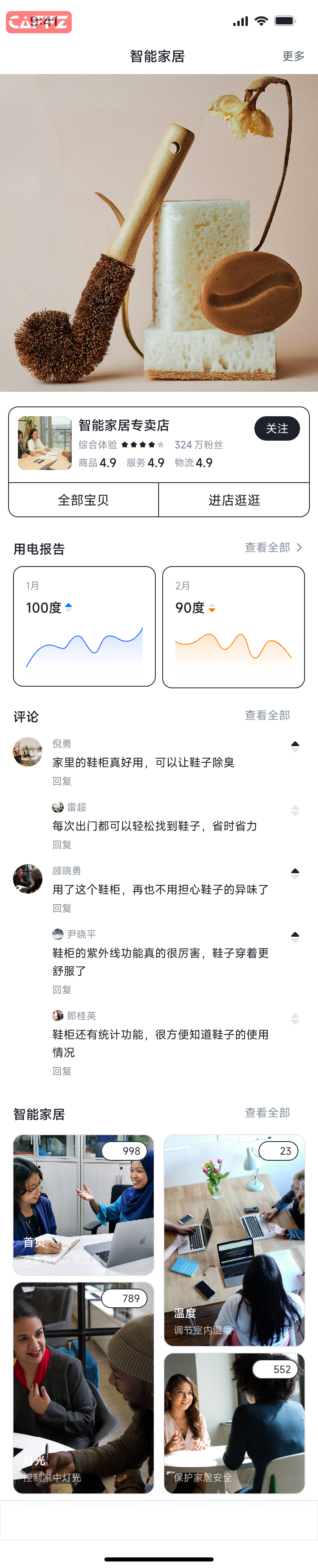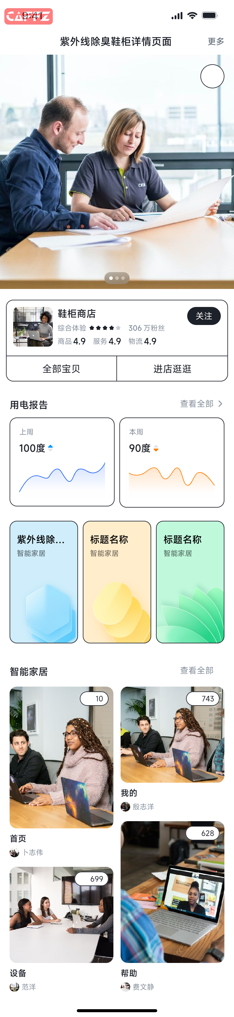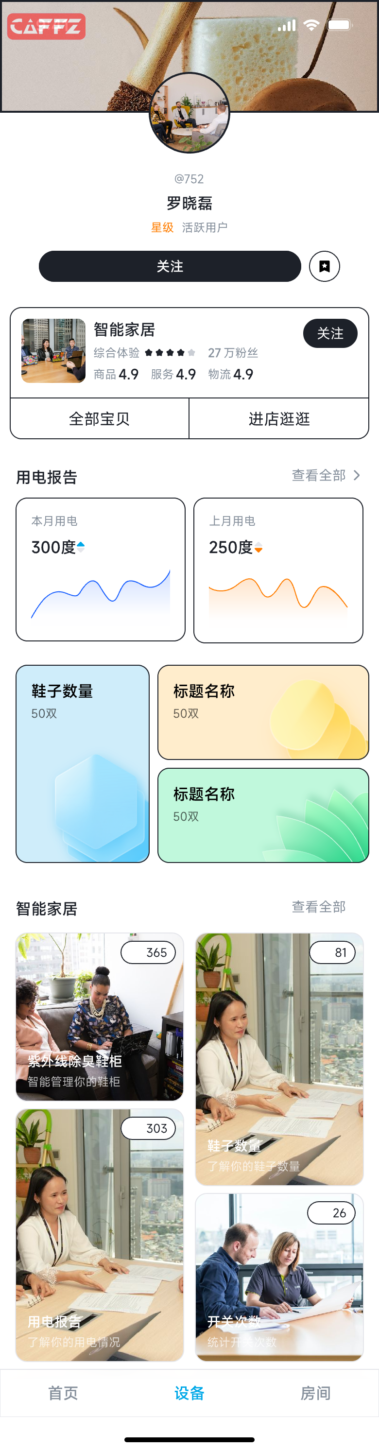 » 智能家居app,紫外线除臭鞋柜详情页面,要求包括紫外线除臭鞋柜介绍、用电报告、鞋子数量、开关次数、取放鞋子次数。