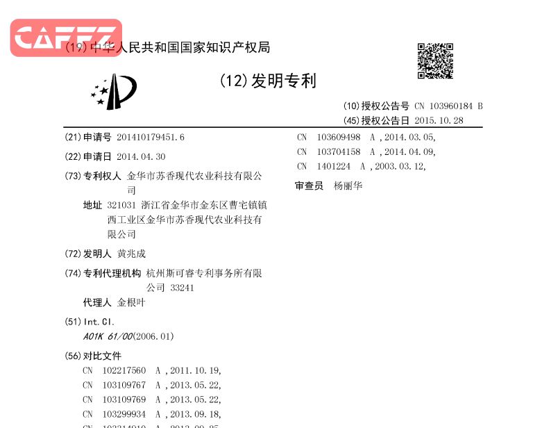 Abstract 本发明属于水产养殖技术领域,尤其涉及一种方法合理简单、操作性强的泥鳅工厂化人工繁殖提高成活率的育苗方法。该方法受精时可采用自然交配法、挤精法,还可以是剖腹取精囊法,可大大降低繁殖亲鱼的死亡率,提高催产率、受精率、孵化率。 Description 一种泥鳅工厂化人工繁殖提高成活率的育苗方法 技术领域 本发明属于水产养殖技术领域,尤其涉及一种泥鳅工厂化人工繁殖提高成活率的育苗方法。 背景技术 泥鳅含脂肪成分较低,胆固醇更少,高蛋白低脂肪食品,含一种类似廿碳戊烯酸的不饱和脂肪酸,有利人体抗血管衰老,有益于老年人及心血管病人。具有补中益气、除湿退黄、益肾助阳、祛湿止泻、暖脾胃、疗痔、止虚汗之功效。被称为“水中之参”。 近年来泥鳅养殖规模迅速发展,苗族成为制约产业发展的瓶颈。目前,我国泥鳅养殖的苗种主要是人工捕捞的野生苗,由于化肥、农药、工业三废等污染,导致泥鳅野生资源锐减,野生苗种资源已不能满足规模化养殖的需要。如何进行规模化繁殖,提高鳅卵的受精率及孵化率。苗种培育成活率,减少劳动强度及繁殖成本是其关键所在。 如中国专利申请号为“201310074705.3”的一种泥鳅鱼苗人工繁殖方法,这种方法在一定程度上都降低了繁殖亲鱼的死亡率,提高了催产率、受精率、孵化率。然而该方法用到的孵化桶为直径15cm,高40cm的圆柱体,该种孵化桶用水量大,同时存在孵化死角,孵化率不高。而且在受精卵之前未对其进行脱粘操作,容易造成受精卵粘连,降低了受精卵的孵化率。 发明内容 本发明针对现有泥鳅幼苗繁殖技术的不足,提供一种方法合理简单、操作性强,可规模化养殖的泥鳅工厂化人工繁殖提高成活率的育苗方法。该方法可大大降低繁殖亲鱼的死亡率,提高催产率、受精率、孵化率。 本发明的上述技术问题是通过以下技术方案得以实施的: 一种泥鳅工厂化人工繁殖提高成活率的育苗方法,其特征在于,包括以下步骤: A.亲本挑选 选择体质健康,色泽正常,活动有力的亲本,喂食3~5天的水蚯蚓; B.人工催产 在水温24~28℃下,对雌性亲本进行人工催产,注射药物为促黄体素释放激素A2、潘立酮、生理盐水,采用肌肉注射; C.人工受精 自然交配法: 把已经催产的雌雄亲本按2﹕1比例放入产卵网箱内,然后放入五面都光滑的水泥池,待其自然产卵受精; D.受精卵孵化 受精后,将受精卵脱粘,脱粘方法为:在受精卵中按滑石粉﹕受精卵=1﹕3的比例加入滑石粉,然后再加入1~2倍的水进行搅拌后,用80目筛过滤,洗去滑石粉后,把受精卵放入锥形孵化桶内孵化,每个锥形孵化桶可孵化500万~700万鳅苗,孵化水温要求在23~28℃; E.鳅苗饲养 经过48小时后,水花在池中散开,开始游动找食时就可喂鳅苗开口饵料,喂食数量按鳅苗总重量的0.5%计算,喂食方法为:将开口饵料放在盘子里,按每平方米放一盘的比例摆放,两小时后取出盘子,从喂食第一天开始,每天要进行换水,换水方法为:先放掉水泥池中三分之一的池水,然后再注入清水;当鳅苗长到2cm时,停掉开口饵料,改成活体丝蚯蚓喂食,每天仍要进行换水,水泥池苗密度要控制在3000~5000尾/m2; F.鳅苗成熟 当12天后,鳅苗已长成3cm,便可将鳅苗放养到大塘中,也可开始作为苗种出售;在大塘养殖15~20天,鳅苗可长成6~8cm,直到成为商品鳅,也可在水泥池中养殖到商品鳅出售。 作为优选,所述的步骤B中具体的注射方法为:在操作台上垫上0.5~1cm厚的棉毡,另做一个15cm直径的圆圈,上缝纱布,用以盖住放在棉毡上的泥鳅亲本,采用肌肉注射的方式将催产素注射到泥鳅体内。 作为优选,所述的鳅苗开口饵料的加工方法为:将60%丝蚯蚓磨成浆和10%新挤鲜牛奶混合均匀,再加上30%鳗鱼白仔料搅拌均匀和成团然后做成小粒状。 作为优选,所述的步骤B中的产卵网箱的网目为9目,网绳粗1mm,孔大2mm,规格为长2m×宽1m×高0.5m。产卵网箱可防止泥鳅亲本吃卵。 作为优选,所述的锥形孵化桶的上口直径为1米,下口直径0.2米,高1米。 作为优选,所述的步骤C中的水为地下水,水的pH=6.5~7,水的溶氧量为至少8mg/L。 作为优选,所述的五面光滑的水泥池深度为70~90cm。 作为优选,所述的受精方法还可以为挤精法:人工挤出一条雄鳅的精液,然后加入0.2%~0.3%的生理盐水稀释,加入的生理盐水的用量为3条母鳅产的卵的体积的三分之一,然后将精液倒入3条母鳅产的卵内,并用鹅毛进行搅拌,使其均匀受精。采用挤精法时挤出的精子量可与3条母鳅产的卵受精。 作为优选,所述的受精方法还可以为剖取精囊法:取一条公鳅,剖开腹部,取出精囊挤出精液,然后加入0.2%~0.3%的生理盐水稀释,加入的生理盐水的用量为10条母鳅产的卵的体积的三分之一,然后将精液倒入10条母鳅产的卵内,并用鹅毛进行搅拌,使其均匀受精。采用剖取精囊法时挤出的精子量可与10条母鳅产的卵受精。 本发明与现有技术相比,具有如下优势。 1.本方法主要采用的是人工受精的方法,即可以是自然交配法、挤精法,还可以是剖腹取精囊法,采用自然交配法,雄性亲本都可以存活并继续饲养,可以最好的保护亲本不受损伤,采用挤精法,雄性亲本也还可以继续存活几天,在这几天中,将雄性亲本作为活鳅售卖,也可获得较高的经济价值,而采用剖腹取精囊法,虽然可以获得最大量的精子,然而雄性亲本就会死亡,只能当作死鳅售出,经济价值较低了。 2.本方法给雌雄亲本注射催产素时,自制了专用