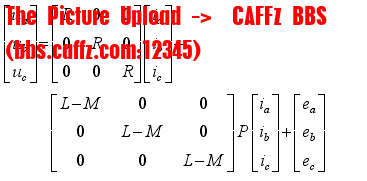 式中,ua,ub,uc为三相定子电压(V);ea,eb,ec为三相定子的反电动势(V);ia,ib,ic为三相定子相电流(A);La,Lb,Lc为三相定子自感(H);Lab,Lac,Lba,Lbc,Lca,Lcb为三相定子绕组之间的互感(H);Ra,Rb,Rc为三相定子绕组的相电阻;p为微分算子(d/dt)。由电机的结构决定,在360°电角度内,转子的磁阻不随转子位置的变化而变化,并假定三相绕组对称,则有:La=Lb=Lc=L,Lab=La=Lba=Lbc=Lca=Lcb=M,Ra=Rb=Rc=R。由于三相对称的电机中,ia+ib+ic=0,以及Mib+Mic=-Mia,则式(3)可改写为:[attach]21945[/attach] (4)