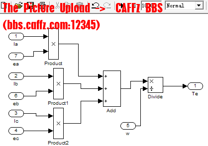 5.3.5转矩计算模块根据BLDC数学模型中的电磁转矩方程式,可以建立图5-10所示的转矩计算模块,模块输入为三相相电流与三相反电动势,通过加、乘模块即可求得电磁转矩信号Te。