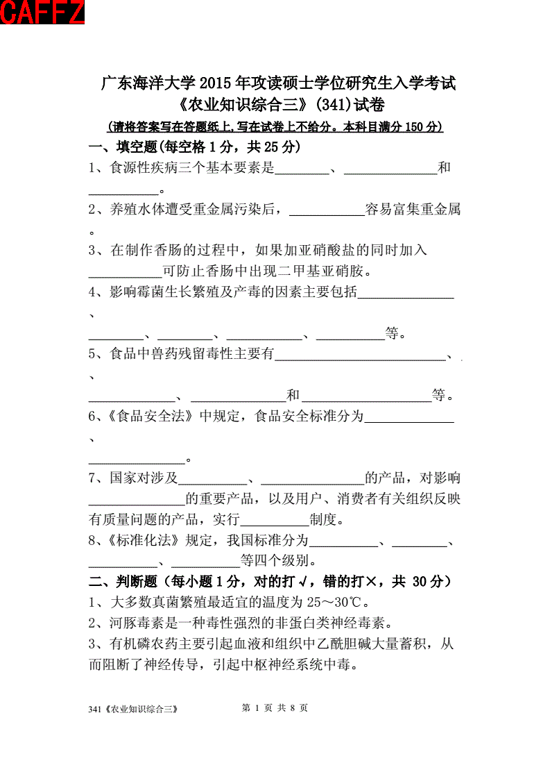 Title: 广东海洋大学2015年攻读硕士学位研究生入学考试——《农业知识综合三》