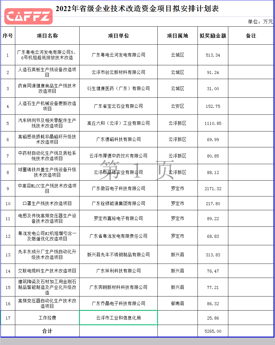 Title: 云浮市工业和信息化局关于2022年省级企业技术改造资金项目拟安排计划的公示