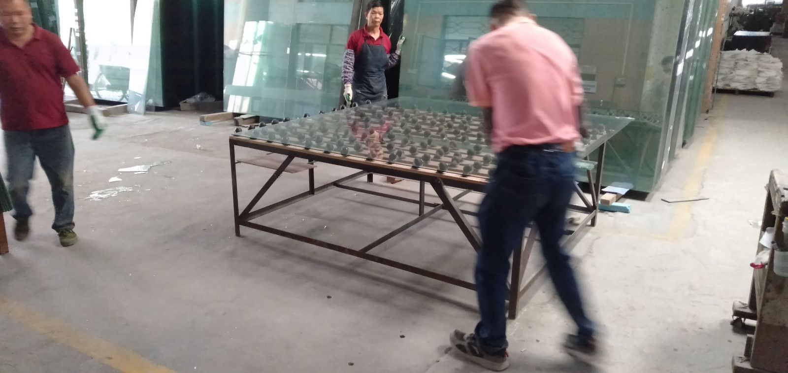 自动切割玻璃与人工切割玻璃。人工班组三位师傅,机器代替即一人管理三台设备。