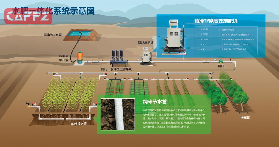 滴灌系统的主要构成部分包括以下几个设备: 首部枢纽: 水泵(及动力机):用于抽取水源,为整个滴灌系统提供动力。 施肥机:与首部枢纽相连,用于向灌溉水中添加可溶性肥料或农药溶液,实现水肥一体化管理。施肥机可以精确控制肥料的用量和施肥时间,确保作物获得充足的养分供应。 施肥罐:用于向灌溉水中添加可溶性肥料或农药溶液。 过滤器:用于去除水源中的杂质,保护滴灌系统,特别是滴头部分免受堵塞。过滤器的种类包括筛网过滤器、旋流砂石分离器、砂过滤器、叠片式过滤器等。 控制与测量仪表:用于监测和控制滴灌系统的运行状态,如压力表、流量表等。 管路: 干管:从首部枢纽引出,将加压水输送到各个支管。 支管:从干管分出,将水输送到更小的毛管或滴灌带。 毛管及滴灌带/管:将水直接输送到滴头,或将滴头安装在管壁上,直接向土壤滴灌。毛管和滴灌带有不同的形式,如连续贴片式、边缝式、双壁式、内镶片式等。 滴头: 滴头的作用是将水流经过微小的孔道,形成能量损失,减小其压力,使它以点滴的方式滴入土壤中。滴头通常放在土壤表面,亦可以浅埋保护。 滴头有多种类型,如非压力补偿及压力补偿式等,以适应不同的作物和灌溉需求。 其他辅助设备: 施肥(药)装置:向压力管道注入可溶性肥料或农药溶液的设备及装置。 调节设备:如压力表、闸阀、流量调节器等,用于调节和控制灌溉水的流量和压力。 滴灌系统通过这些设备的组合和配合,实现了对作物的高效、节水、节肥的灌溉,广泛应用于农业、林业和园艺等领域。 [ 本帖最后由 sky999 于 2024-5-29 14:20 编辑 ]