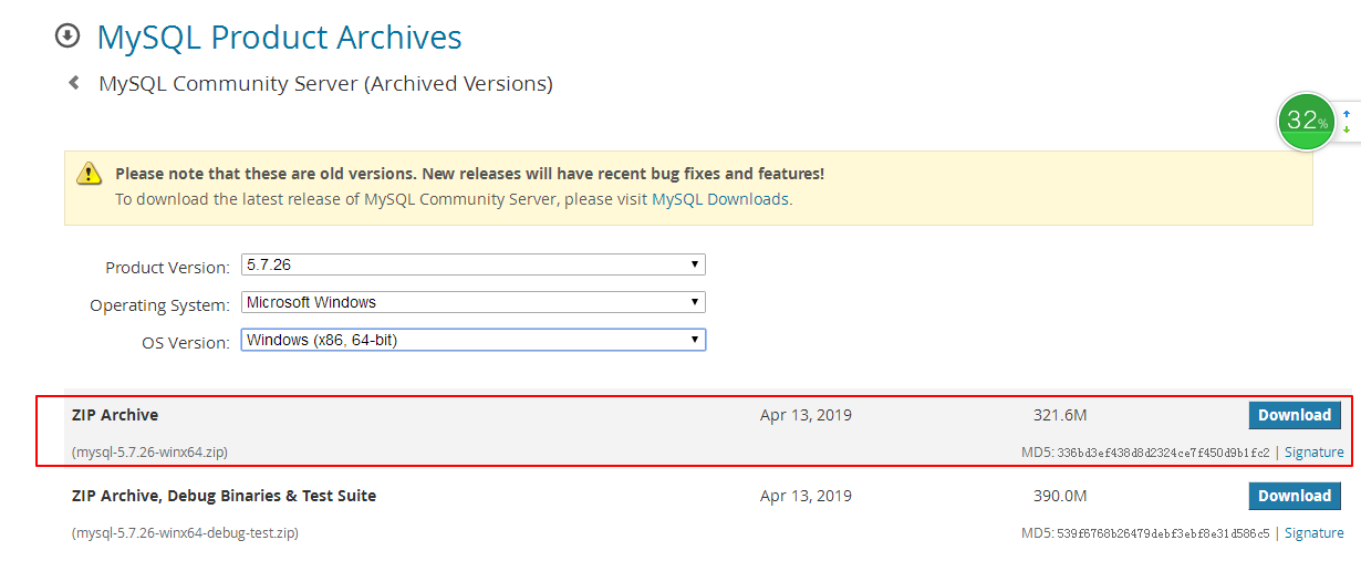 https://dev.mysql.com/downloads/windows/installer/5.7.html